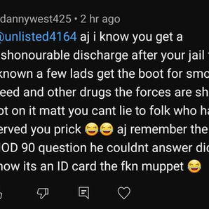 “Matt I think you're taking the piss if you think it's AJ. Do your due diligence research, because the rumours you have been highlighting about AJ are dangerous. Just because the Nonce has the same surname as AJ, don’t mean it’s any relation. I went to school with people who had the same surname as me, and I was not related to them. Like I said to you earlier, this is nasty work Matt. Revenge is one thing, but this is evil.”